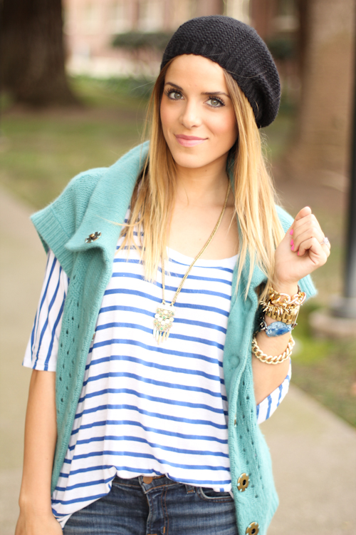 Top Michael Stars, Vest Free People (old), Jeans J Brand, Booties Asos, Beanie Forever21, Purse Tory Burch, Necklace Madewell, Bracelets Bfrend, Oia Jules, Stella & Dot, Watch Michael Kors