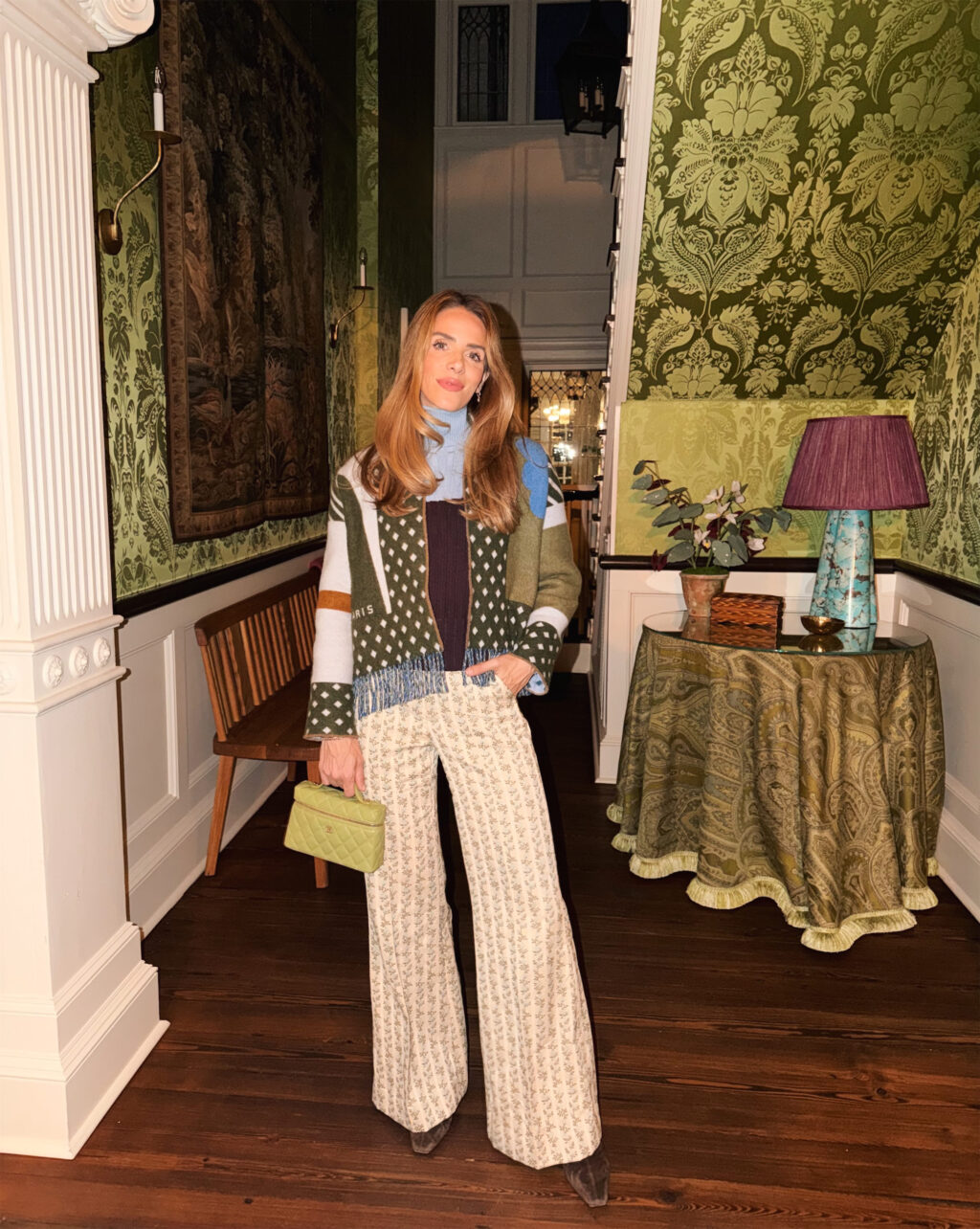 LilyEve Jacket, Tory Burch Sweater (old, similar here), Rosie Assoulin Pants (similar here), Chanel Bag (similar here), Aquazzura Boots