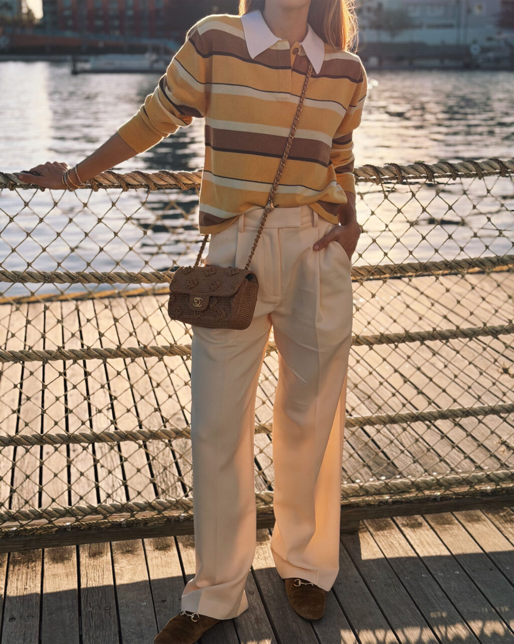 Jan 2026 Daily Look No. 21 Guest In Residence Sweater, Renggli Pants, Chanel Bag (similar here), Gucci Slides