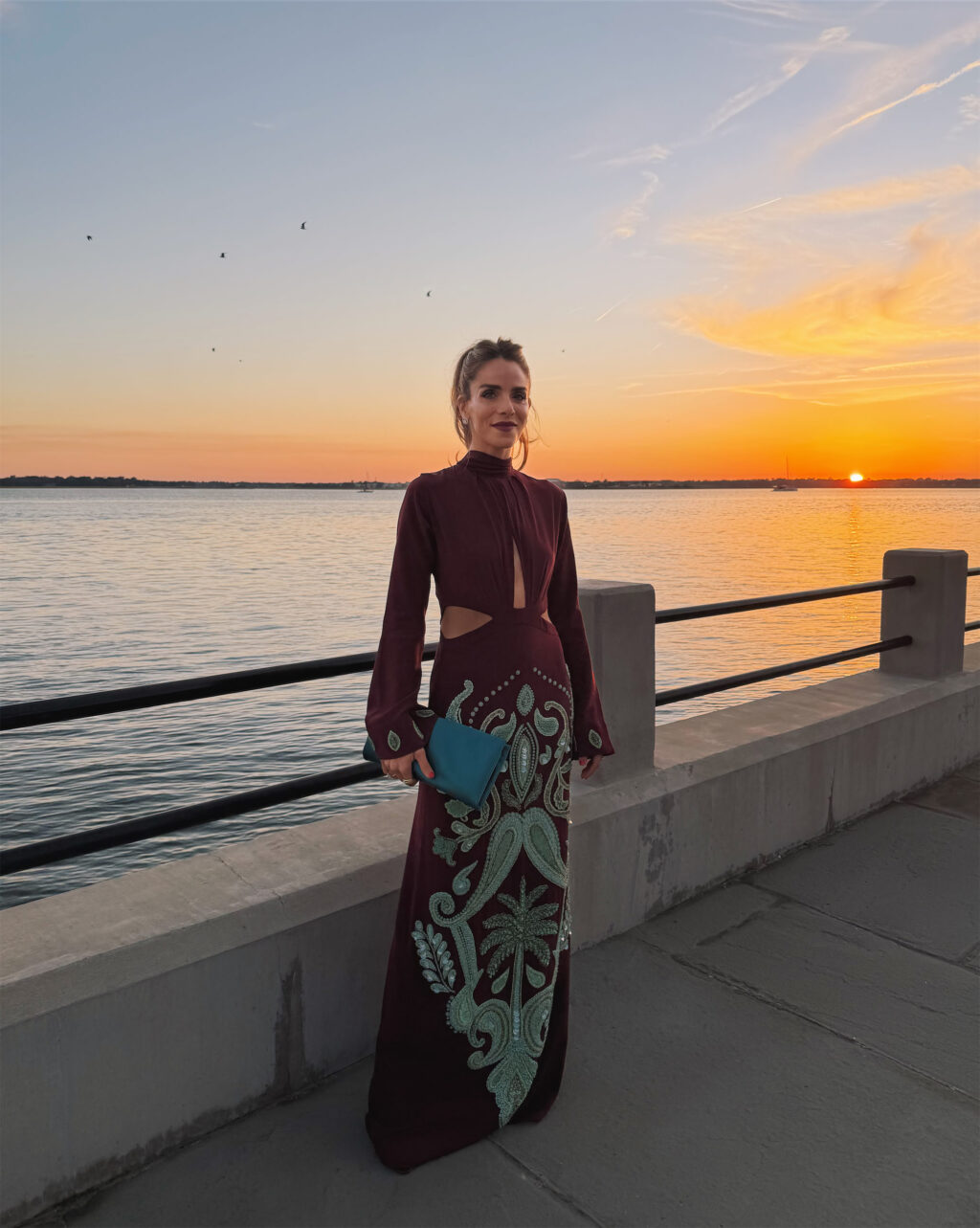 Johanna Ortiz Dress, Saint Laurent Heels & Clutch, Arielle Ratner Earrings