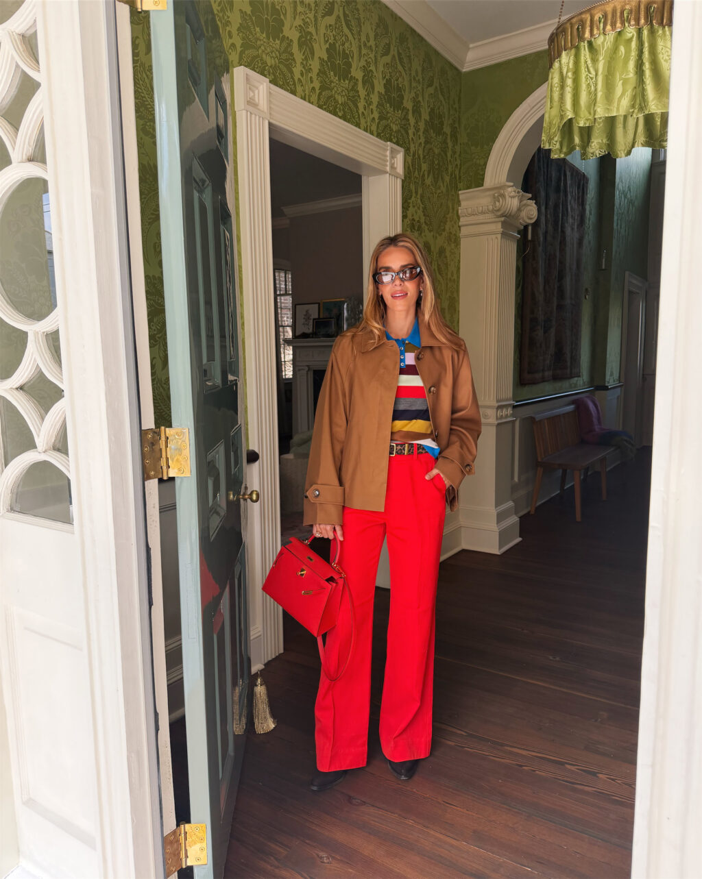 Mango Jacket, Leset Sweater (more sizes here), A Piece A Part Pants, Rag & Bone Belt (similar, less expensive here), Hermes Bag (similar here), Partlow x Adam Lippes Boots, Bottega Veneta Sunglasses