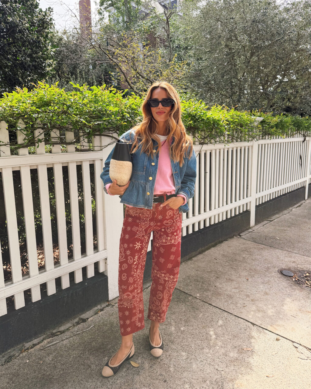 Ulla Johnson Jacket, Amazon Sweater, Tee & Jeans, Nour Hammour Belt (similar here and here), Chanel Flats (on The RealReal, similar here), Altuzarra Bag, Dior Sunglasses