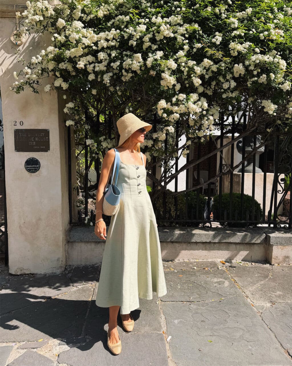 Apr 2026 Daily Look No. 116 Altuzarra Dress (more sizes here and here), Janessa Leone Hat, JB x Margaux Flats, Altuzarra Tote