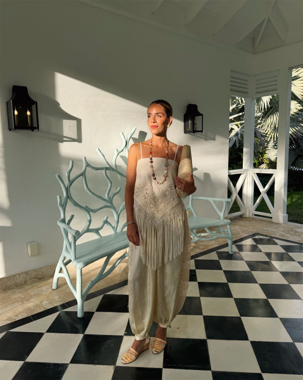 Apr 2026 Daily Look No. 119 Sea NY Top & Pants, Valentino Wedges, Marisa Klass Necklace, Carolina Bucci Earrings, Altuzarra Tote