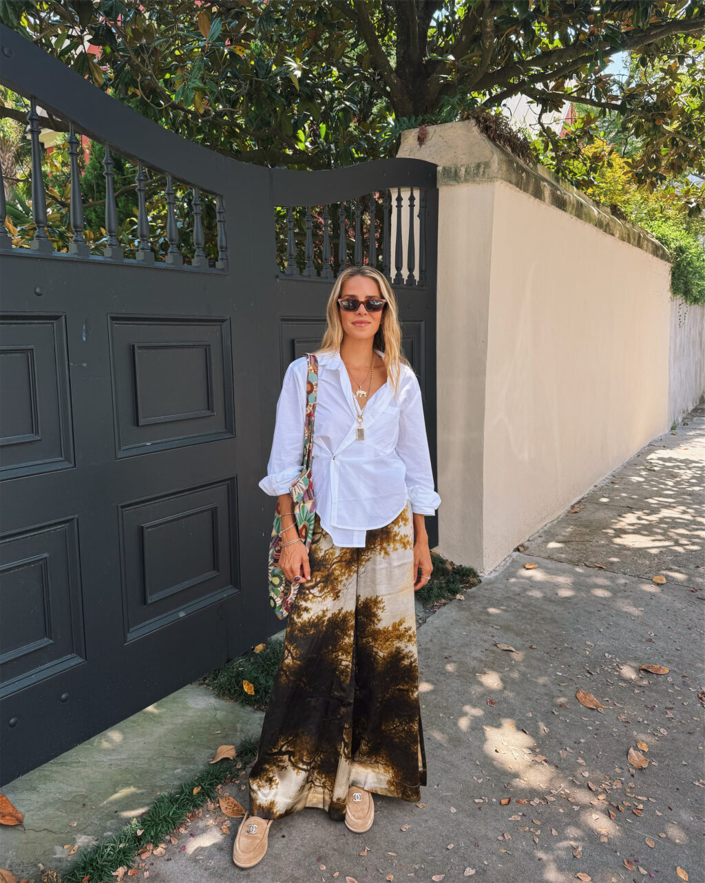 Cissa Top (on sale, more sizes here), Lingua Franca Pants, Chanel Flats (similar here and here, less expensive here), Sherman Field Necklace & Jenna Blake Elephant Pendant