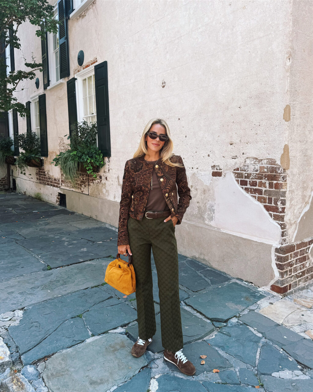Chloe Jacket, Rue Sophie Tank, Gucci Pants, Prada Sneakers (similar, less expensive here), Vintage Chanel Bag (similar here and here), Fope Necklace, Similar Belt, Jacque Marie Mage Sunglasses