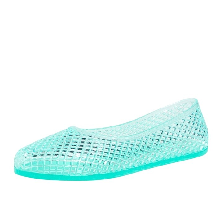These aqua-toned jelly flats blend nostalgic charm with modern flair, offering a waterproof and stylish option for rocky seaside strolls and sun-soaked adventures.