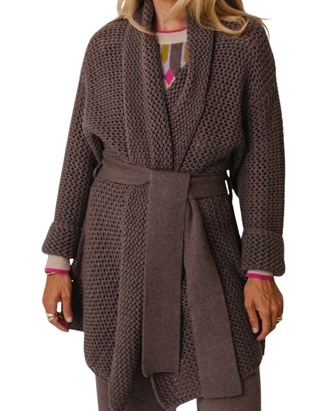• 09.29.25 The Julia Wrap A graceful wrap sweater with soft drape and flattering ties that create an elegant, easy silhouette. Previous Story The Clementine Geo Pullover Next Story The Tipped Clara Pullover in Chartreuse