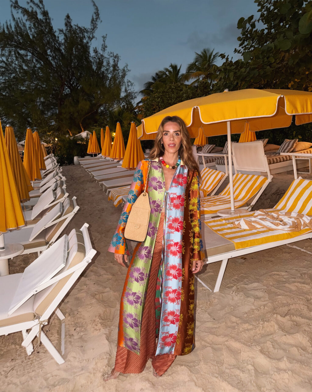 Rosie Assoulin Jacket, Guiliva Heritage Pants, Chanel Bag, Carolina Bucci Necklace