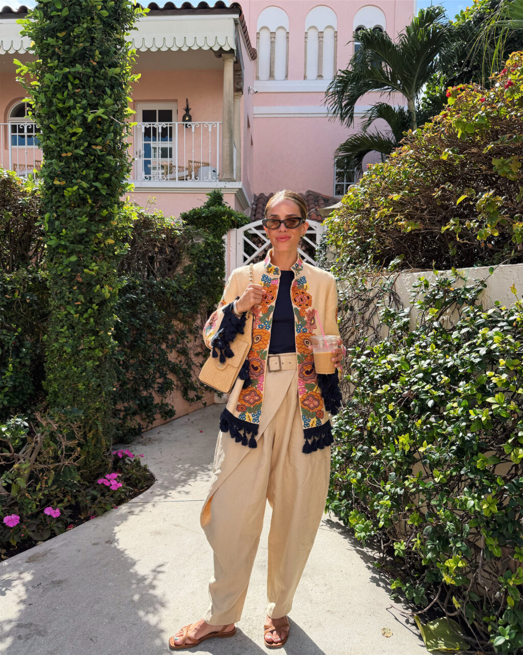 Valentino Jacket (more similar here), Flore Flore Shirt, Ralph Lauren Pants, Marguax Sandals, Bottega Veneta Sunglasses, Chanel Bag, Irene Neuwirth Earrings (similar here)