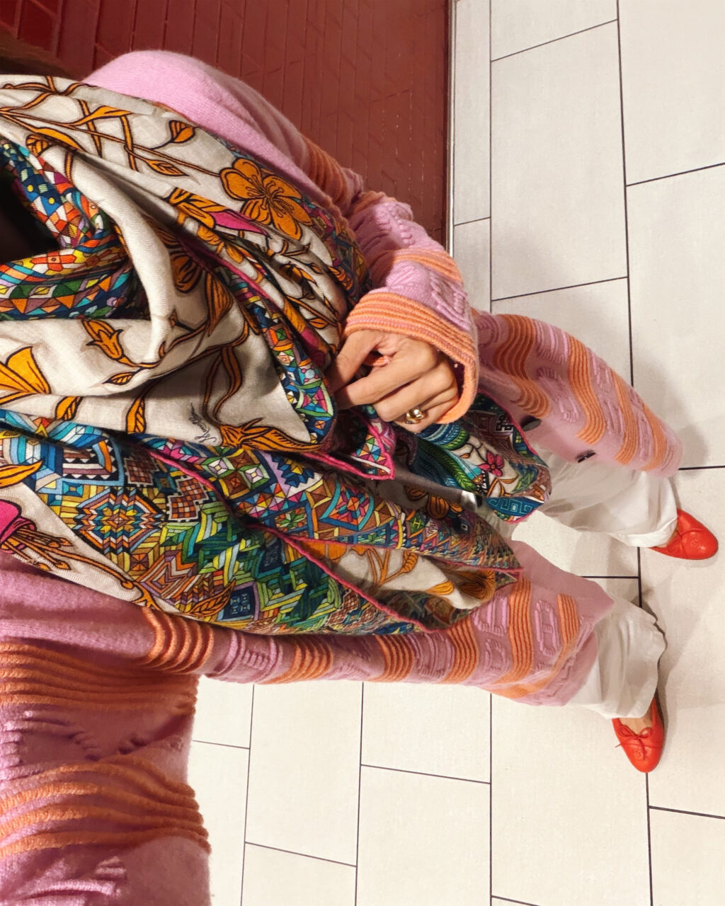 Hermes Scarf (similar here and here) & Sweater (similar here), DL1961 pants, Chanel flats (old, similar here and here)