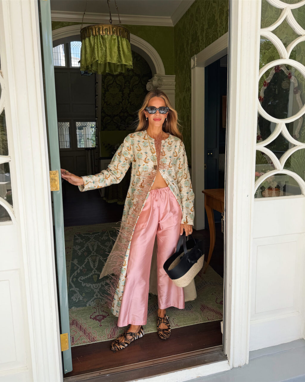 Chan Luu Jacket, Donni Pants, Alaia Flats, Altuzarra Tote, Dior Sunglasses, Sherman Field Necklace (out of stock, similar here)