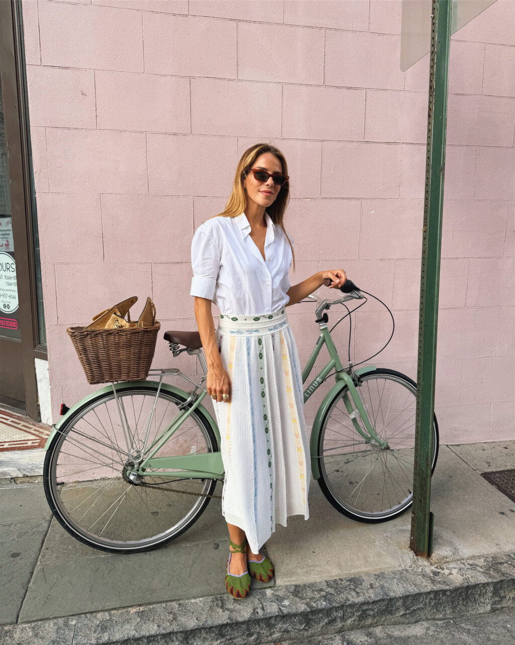 The Row Shirt (similar here and here), Molli Skirt, Kashura Flats, Chanel Bag, Gucci Sunglasses