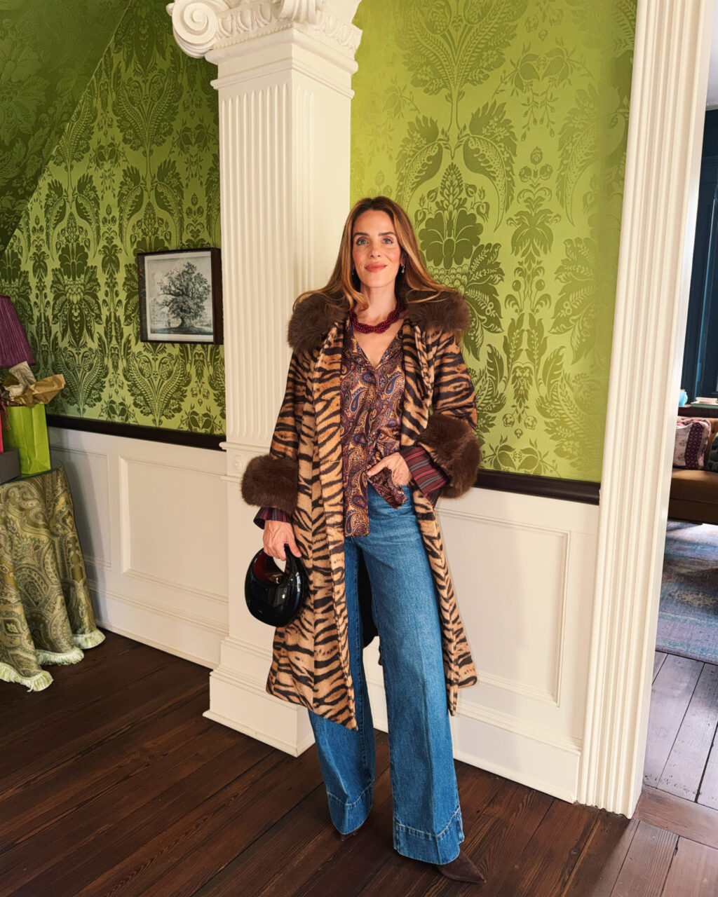 Charlotte Simone Coat (similar here), Zara Top, Frame Jeans, JB x Jennifer Behr Necklace, Rocio Bag, Jimmy Choo Boots